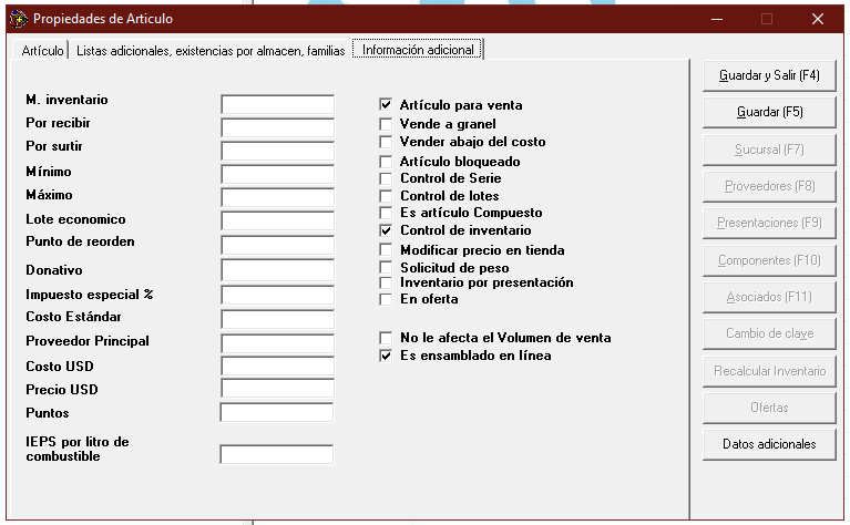 Control de inventario para los artículos marcados con esta opción, el sistema llevará un control de la existencia y costos del producto, en caso contrario, el sistema no llevará un seguimiento del registro en el kardex de los movimientos del producto.